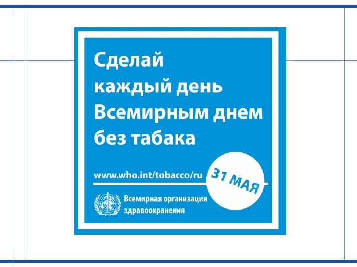 Распространенность табакокурения в России* Постоянные курильщики среди взрослого населения – 39, 1% (43, 9 млн. человек): • мужчины – 60, 2% (30, 6 млн. человек) • женщины – 21, 7% (13, 3 млн. человек) * «Глобальный опрос взрослого населения о потреблении табака» 2009 (15 лет и старше)
