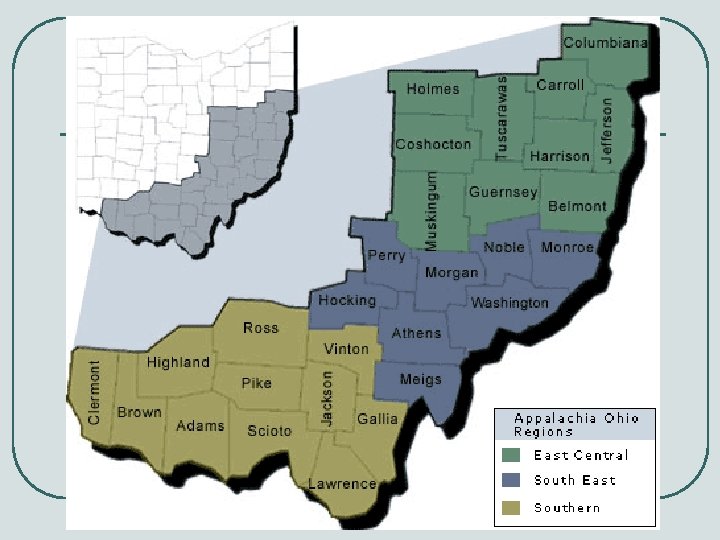 Collaboration Through Education l l “Understanding and educating people about Appalachia and the issues that are relevant to the Appalachian area are vital to the growth and development of this region. ” …a continuing out-migration problem tends to extract the most qualified and the most talented of the work force and sends them to either a neighboring county or to one of the surrounding major metro areas.