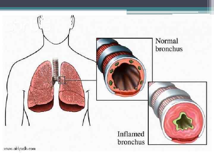Формы обструкции дыхательных путей: • Острая (бронхоконстрикция, отек слизистой оболочки дыхательных путей) • Хроническая (продукция вязкого бронхиального секрета и ремоделирование бронхов)