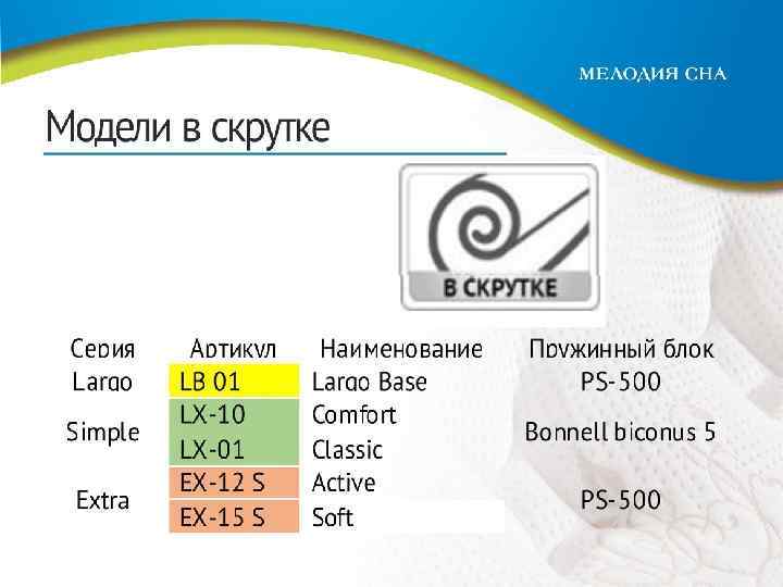 Cерия «Largo» , «Style» , «Simple» Комплектация кроватей в сегменте «Эконом +» , «Средний –»