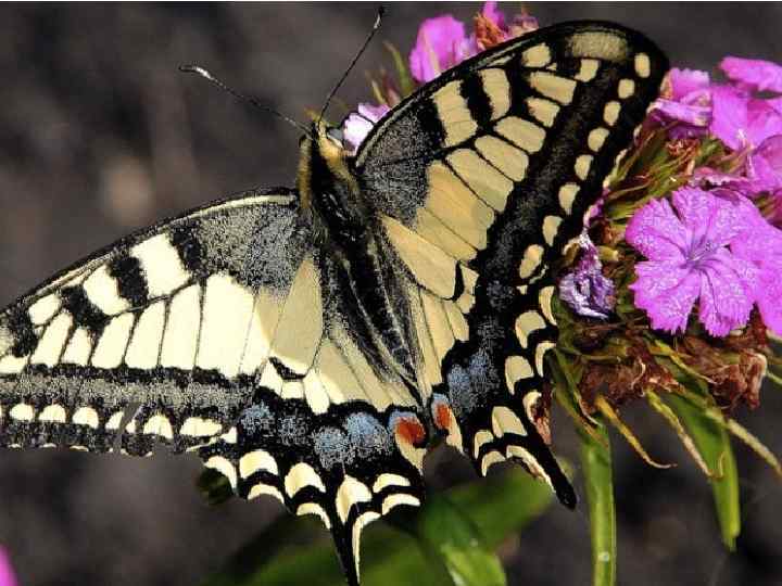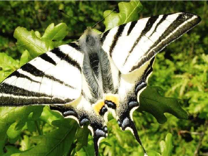 Подалирий – бабочка семейства парусников. На ее передних крылы несколько темных полосок. На задних крыльях серые полоски и голубые пятна. Внизу – красно – синие глазки. Они нужны бабочке д защиты от врагов. Бабочка с хвостами, Полюбуйтесь сами. Окрашена броско, Крылышки в полоску.