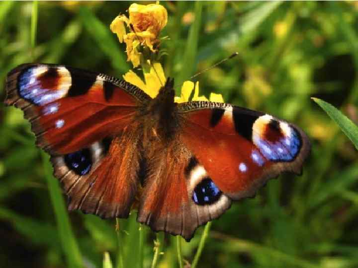 Павлиний глаз – одна из самых красивых европейских бабочек из семейства нимфалид. Сверху крылья красно – бурые. Снизу коричнево – черные. На каждом крыле пестрое пятно, очень похожее на глаз. Эти «глаза» отпугивают птиц и насекомых. Посмотрел с цветка на нас Расписной павлиний глаз. Бабочка как сказка. Зовут павлиноглазка.