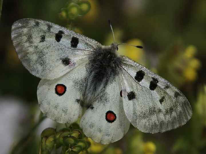 Аполлон – красивая, крупная бабочка. Она светлая, на ее крылышка черные пятнышки и очень выразительные ярко - красные «глазки» . Такая окраска является предупреждающей. В минуты опасности бабочка «шипит» ( скребет лапками ), чтобы отпугнуть врага. Может бабочка летать, Может птицу испугать. Зашипит: » Не ешь меня!. Не съедобна вовсе я!»