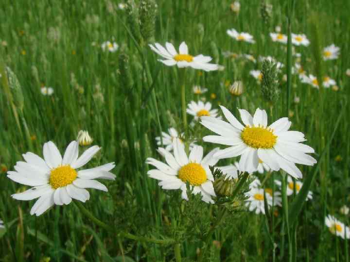 А у самой тропинки, по обочинам канав, на зеленых лужайках цветут, кланяются вам знакомые веселые ромашки. На радостную улыбку похожи скромные цветы ромашки с белыми и чист лепестка