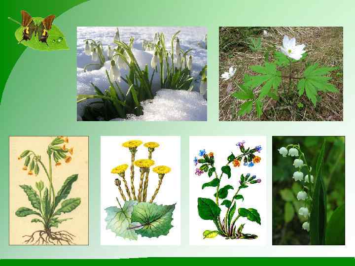 Раннецветущие растения Мать-и-мачеха Медуница Ландыш Ветреница дубравная Первоцвет весенний Подснежник
