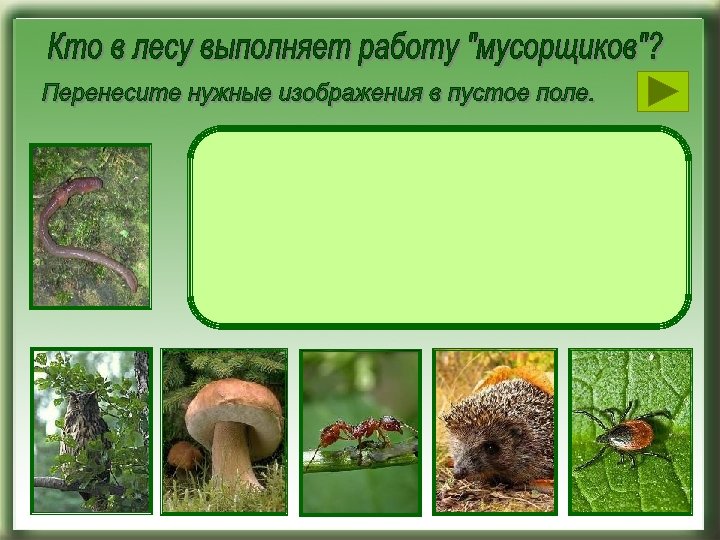 Ссылки на источники графики Дуб - http: //www. zateevo. ru/userfiles/image/Rasteniya/Dub/dub_5. jpg Берёза - http: //gigamir. net/upload/cache/290 xs/img/content/originnal_fdbf 3 ebd 798 e 8004 b 0 e 58 f 82 f 75082 d 0. jpg Ольха - http: //medicalherbs. sci-lib. com/images/medherb 115. jpg Ель - http: //medicalherbs. sci-lib. com/images/medherb 058. jpg Сосна - http: //stringer. ucoz. ru/_si/0/77542380. jpg Липа - http: //s 44. radikal. ru/i 104/1004/4 d/079 bbee 5 b 7 da. jpg Можжевельник - http: //kaspiy. ucoz. ru/stati/medherb 104. jpg Рябина - http: //letopisi. ru/images/e/ea/%D 0%A 0%D 1%8 F%D 0%B 1%D 0%B 8%D 0%BD%D 0%B 0. jpg Клен - http: //forest. geoman. ru/forest/item/f 00/s 01/e 0001171/pic/001_425. jpg Осина - http: //www. travniku. ru/store/rastenie/osina. jpg Дождевые черви – http: //upload. wikimedia. org/wikipedia/commons/thumb/3/30/Regenwurm 1. jpg/597 px-Regenwurm 1. jpg Филин – http: //kungrad. com/foto/nature/b 11. jpg Муравей - http: //img-fotki. yandex. ru/get/54/tatsh 2008. 13/0_f 383_103 d 6 e 5 f_L. jpg Клещ - http: //www. zdr. ru/images/publs/big_8350. jpg Гриб - http: //www. schaetzeausoesterreich. at/schaetzeausoesterreich/shop/images/steinpilz. jpg Ёж - http: //ejik-land. ru/comm/img/i-c 5 ba 3 -32235699. jpg Заяц - http: //www. cnshb. ru/AKDi. L/0021/pic/Image 2036. gif Мышь - http: //www. ecosystema. ru/08 nature/mamm/114. jpg Лиса - http: //ebftour. ru/images/load/Image/lisa. jpg Волк -http: //www. ecosystema. ru/08 nature/mamm/048. jpg Ёж - http: //www. ecosystema. ru/08 nature/mamm/001. jpg Барсук - http: //www. aif. ru/application/public/news/967/5 b 45728134 eb 96371 bc 4 ffb 83 b 88 e 106_big. jpg Медведь - http: //img. lenta. ru/news/2005/07/04/bears/picture. jpg Ежик - http: //kasherun. narod. ru/images/src 2935. jpg Лиса - http: //i 009. radikal. ru/0908/a 4/b 51 fc 8 f 30633. jpg Лось - http: //www. nakanune. ru/images/pictures/image_big_4021. jpg Волк - ссылка Кедр - http: //economy. newsib. ru/images/9860_resample_600_400. jpg Пихта - http: //www. tsvetnik. info/images/picea_abies_illustr. jpg Лиственница - http: //www. biodat. ru/db/rbp/pic/446. jpg Снегири - http: //mytashkent. uz/wp-content/uploads/2009/02/snegir. jpg Свиристели - http: //pics. photographer. ru/nonstop/pics/pictures/121215. jpg Клесты - http: //900 igr. net/Detskie_prezentatsii/nasekomye_i_ptitsy/Ptitsy_eimoj. files/slide 0015_image 026. jpg Синички - http: //images-5. moifoto. ru/middle/1/184/2001755 zng. jpg? 1262448358 Клёст - http: //club. foto. ru/gallery/images/photo/2009/04/16/1320838. jpg Белка - http: //img-fotki. yandex. ru/get/24/aisdom 777. b/0_a 8 b 1_2 a 6 db 3 d 9_L Заяц - http: //img-fotki. yandex. ru/get/52/vibpxhgglzd. dae/0_3 b 823_b 72 bd 4 a 0_XL