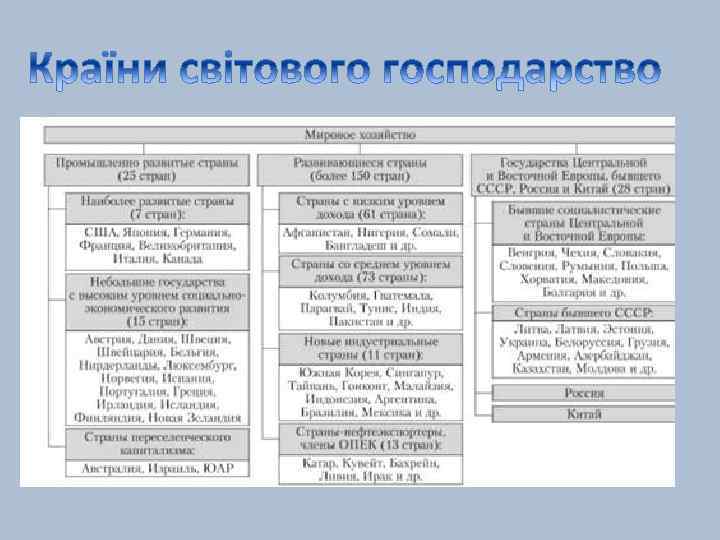 Світове господа рство— глобальна система господарств держав та недержавних утворень, що пов'язані міжнародним поділом праці і взаємодіють між собою у різних формах.