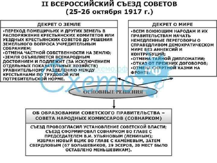 Захват большевиками власти в Петрограде. II съезд Советов • К утру 25 октября 1917 года столица была в руках восставших. ВРК в обращении «К гражданам России!» объявил о взятии власти. • Петроградский Совет на своем дневном заседании приветствовал свержение Временного правительства. • Поздно вечером 25 октября, когда весь город был в руках большевиков, открылся II Всероссийский съезд рабочих и солдатских депутатов. В Совете было очень много большевиков, поэтому представители ряда других партий в знак протеста покинули съезд. • Поступившее известие о взятии Зимнего дворца окончательно изменяет настроение делегатов съезда. Руководство съездом перешло к большевикам. • В соответствии с принятым воззванием «Рабочим, содатам, крестьянам» вся власть на местах переходила к СРСи. КД. • Ленин учел ошибки Временного правительства и вынес на съезд самые насущные из них, которые отвечали народным представителям справедливости. •