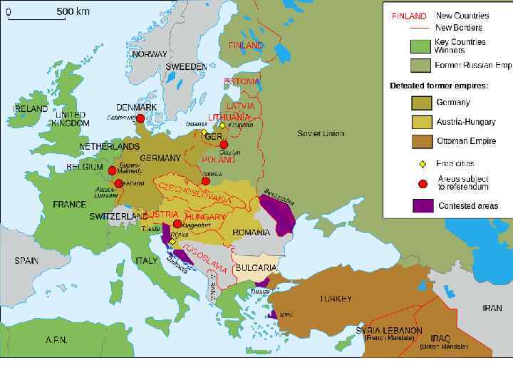 Важные пункты мирного урегулирования 1919 -1920 гг. – создание Лиги Наций: l участники организации должны были консультироваться по вопросам агрессии и нарушения мира и разрешать разногласия в арбитражном суде l если агрессор не подчинялся решениям Лиги, предусматривались санкции и военное вмешательство l 1921 -1922 гг. – Вашингтонская конференция (пересмотр некоторых условий с учетом интересов США) l