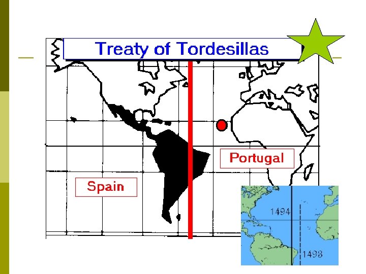 Treaty of Tordesillas Spain and Portugal disputed each others right to explore new lands, so the Pope arranged a settlement (since both were Catholic nations) n 1494 - Spain and Portugal signed the Treaty of Tordesillas, which drew a Line of Demarcation through the western Atlantic n
