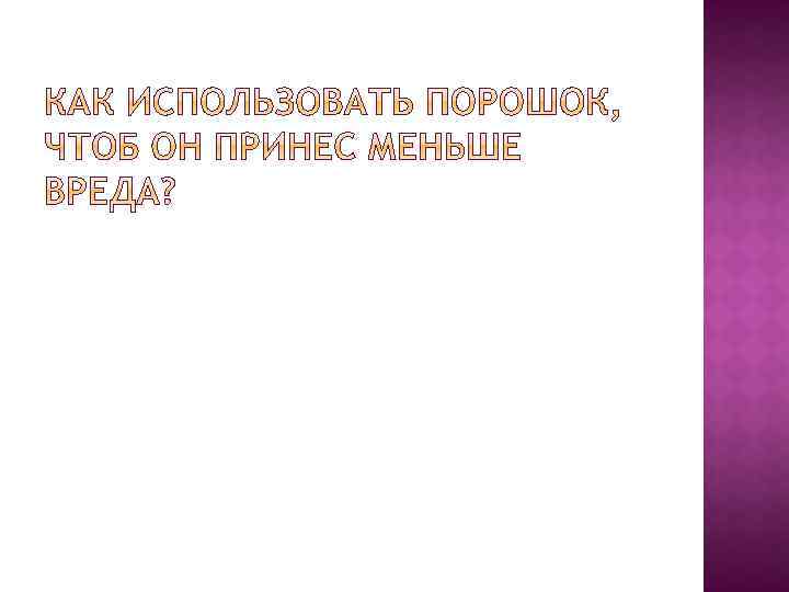 Цель работы: выявить качество порошкообразных синтетических моющих средств, их воздействие на организм и ткани человека. В соответствии с целью были поставлены следующие задачи: Изучить источники информации по проблеме исследования Дать определения понятий СМС и ПАВ Изучить механизм их работы Дать прогноз негативного влияния порошкообразных синтетических моющих средств на кожу и дыхательную систему человека Разработать памятку потребителям по использованию порошкообразных синтетических моющих средств