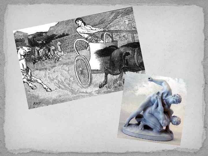 – на 23 Олимпийских играх (688 до н. э. ) в программу состязаний вошел кулачный бой – на 25 Олимпийских играх (680 до н. э. ) добавлены гонки на колесницах – на 33 Олимпийских играх (648 до н. э. ) в программе Игр появились верховые скачки на лошадях единоборство, соединявшее в себе элементы борьбы и кулачного боя с минимальными ограничениями на «запрещенные приемы»