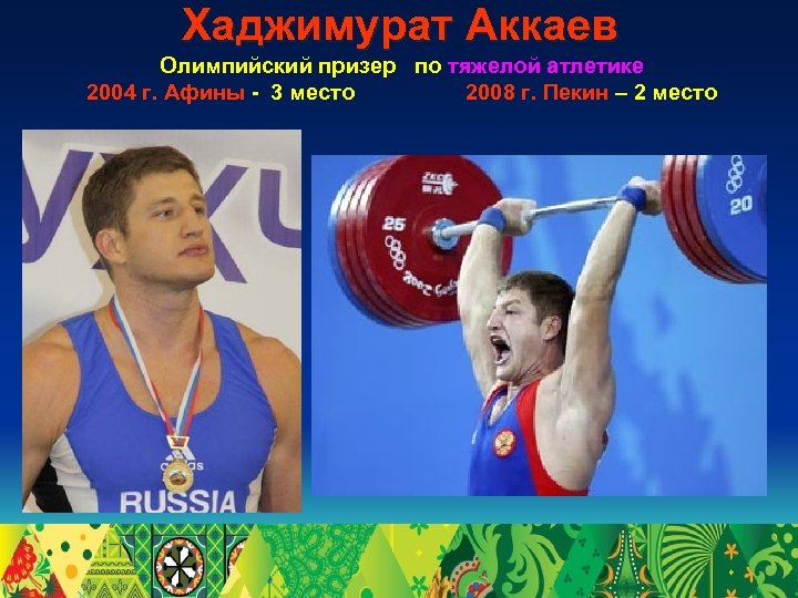 Хаджимурат Аккаев Олимпийский призер по тяжелой атлетике 2004 г. Афины - 3 место 2008 г. Пекин – 2 место
