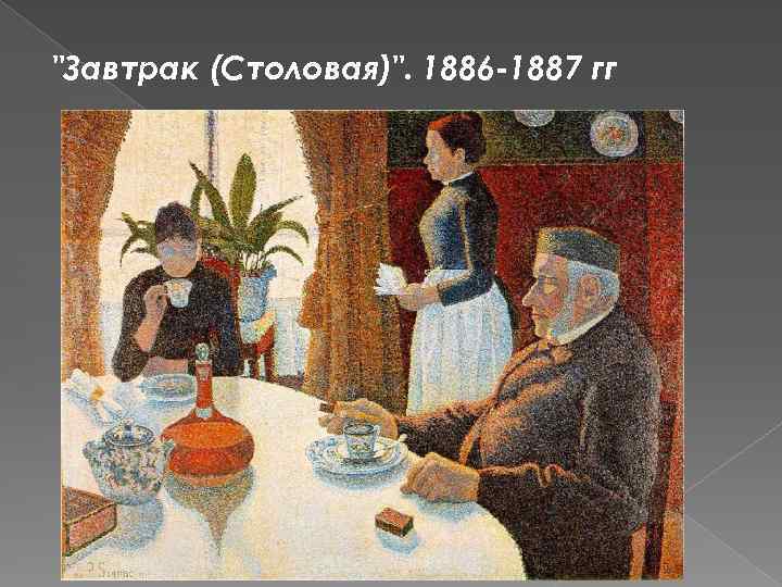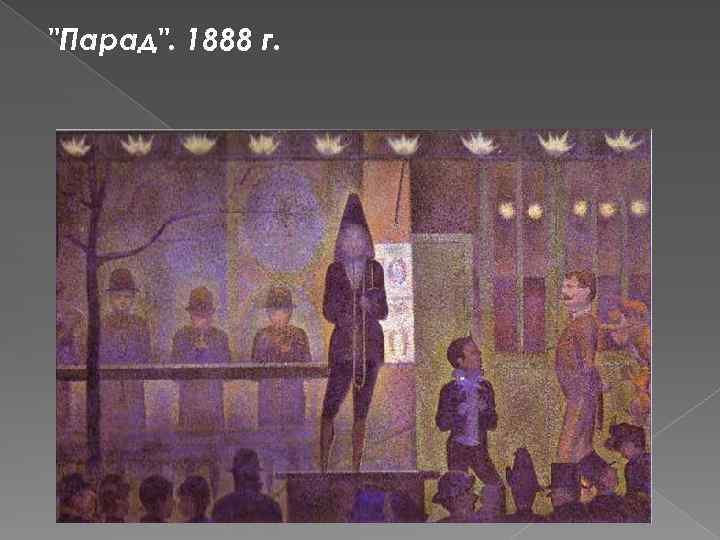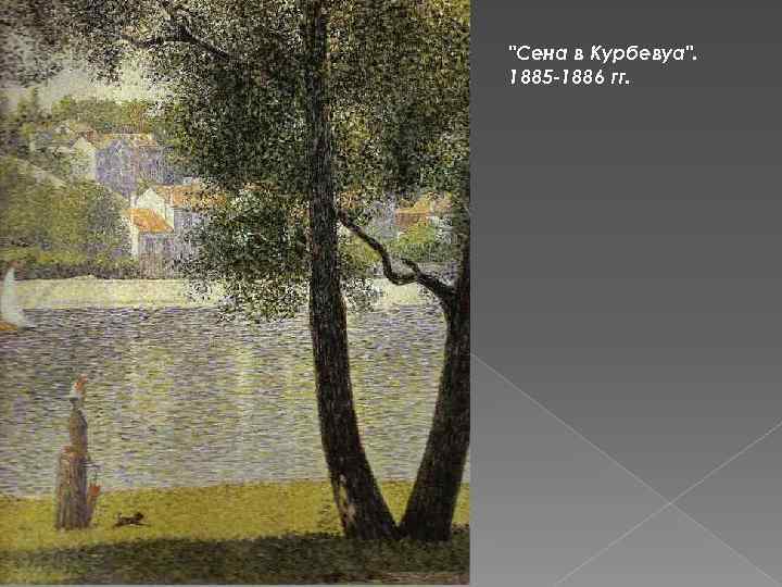 Неоимпрессионизм — течение в живописи, возникшее во Франции около 1885 г. Его основными представителями были Ж. Сёра и П. Синьяк. Термин ввёл критик Феликс Фенеон (фр. Félix Fénéon) в статье для бельгийской газеты «L’art Moderne» ( «Современное искусство» ), чтобы отличать творчество Сёра от импрессионистов. Впоследствии стиль Сёра также получил название «пуантилизм» .