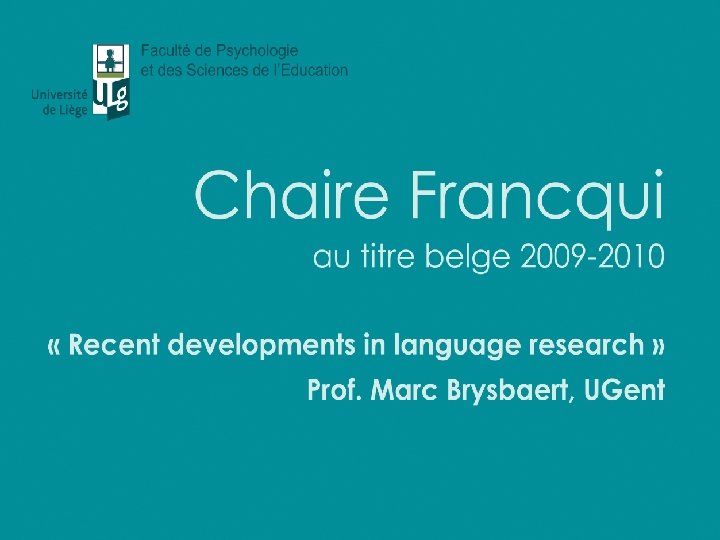 Conclusion • Go and read – Brysbaert, M. , & Duyck, W. (in press). Is it time to leave behind the revised hierarchical model of bilingual language processing after 15 years of service? Bilingualism: Language and Cognition. – Available at biblio. ugent. be • Not all doom and gloom – Bilingualism increases your ability to switch tasks. – Bilingualism may postpone Alzheimer by 5 -10 yrs.
