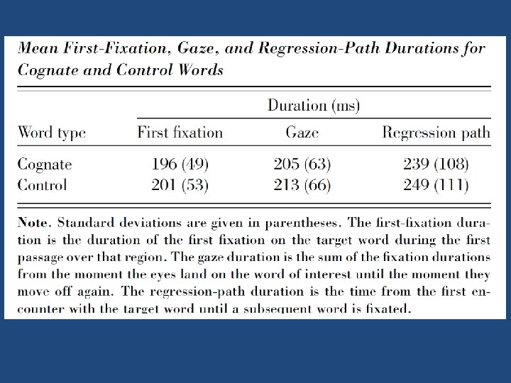 Van Hell & Dijkstra Ghent Lexicon Psychology students Students French Psychology students Dutch-English cognate 499 489 559 Dutch-French cognate 519 520 585 Control word 529 541 595 English cognate effect 30* 52** 36* French cognate effect 10 21* 10