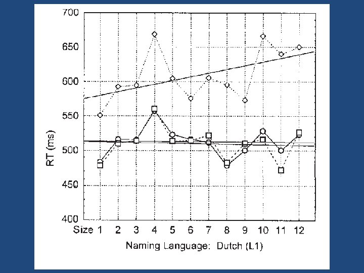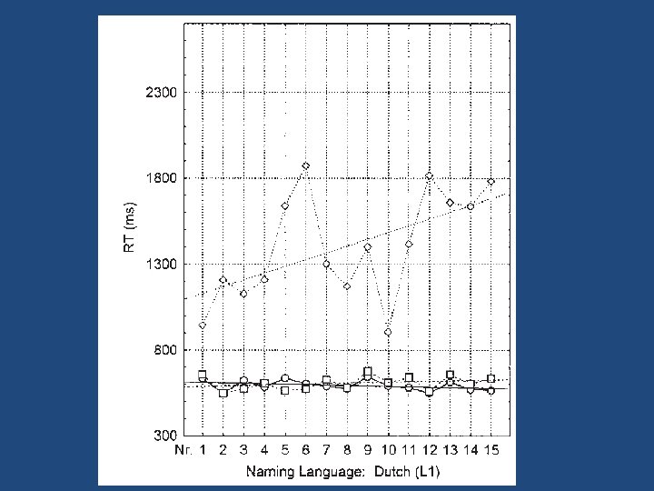 The bilinguals were too proficient • Duyck & Brysbaert (2004, experiment 3) – Participants learned new, artificial (Estonian) number words 1. Name L 1 number words in L 1 2. Name Arabic numbers in L 1 3. Translate L 2 number words in L 1 (backward)