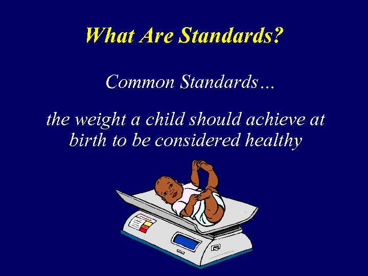 What Are Standards? Common Standards… the weight a child should achieve at birth to be considered healthy