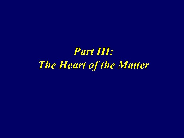 Part III: The Heart of the Matter