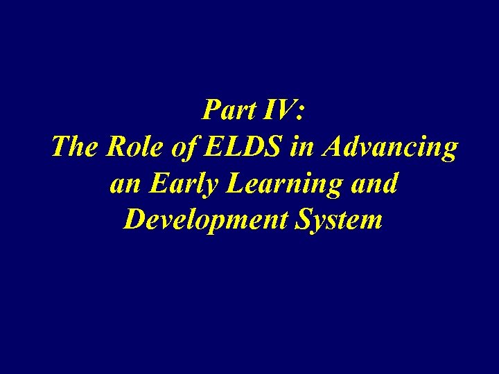Part IV: The Role of ELDS in Advancing an Early Learning and Development System