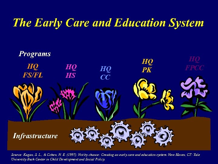 The Early Care and Education System Programs HQ FS/FL HQ HS HQ CC HQ PK HQ FPCC Infrastructure Source: Kagan, S. L. , & Cohen, N. E. (1997). Not by chance: Creating an early care and education system. New Haven, CT: Yale University Bush Center in Child Development and Social Policy.