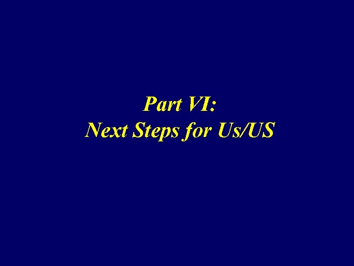 Part VI: Next Steps for Us/US