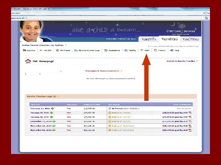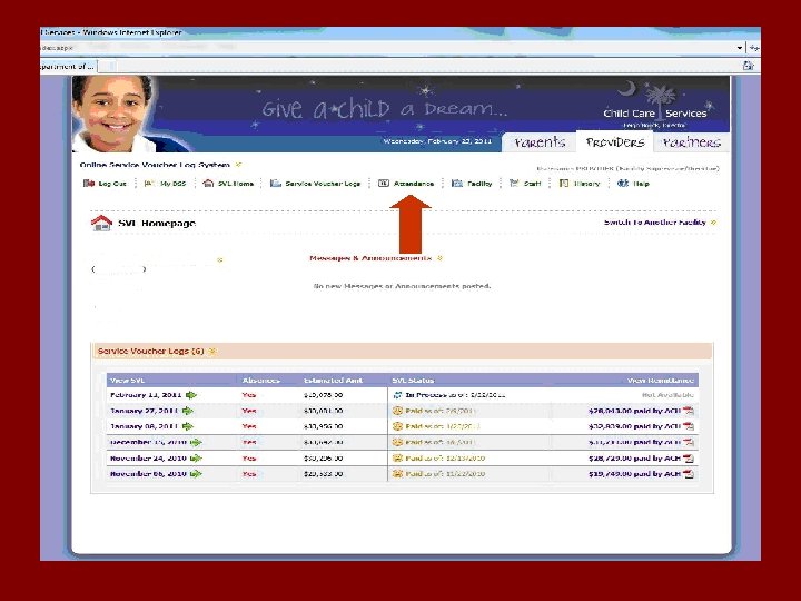 To Be On-line You Must… • Be an Enrolled ABC Child Care Provider • Have internet access • Have Web Browser Internet Explorer version 6. 0 or above • Call the ABC Child Care Program to be changed from paper to On-line SVL (24 hour wait) • Visit the DSS website (dss. sc. gov)