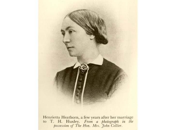 Huxley’s Marriage In 1854 Henrietta Heathorn’s father brought her to London, providing the opportunity for Huxley to marry her. Henrietta was very ill when she arrived in England one physician gave her six months to live. Huxley decided to marry her anyway and give her a happy six months, but she eventually recovered and outlived him by 20 years, living to the age of 90. They were married in July, 1855. Huxley’s friends referred to his family as, simply, “The Happy Family. ” Huxley’s devotion to his wife and children was obvious and remarkable. The confirmed bachelor, Herbert Spencer, also was devoted to “Netty. ”