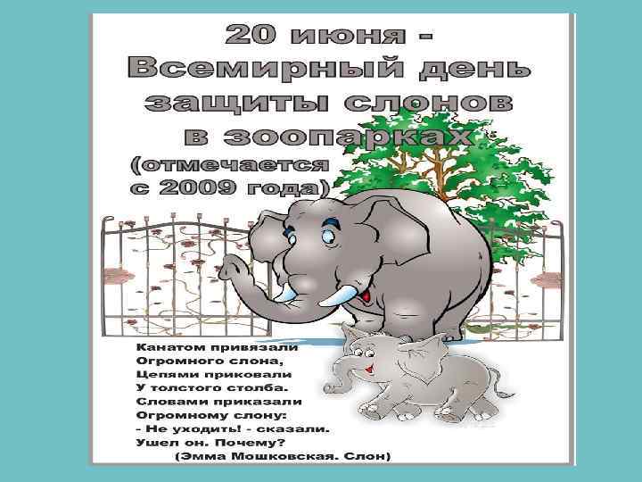 Всемирный день защиты слонов в зоопарках - 20 июня.
