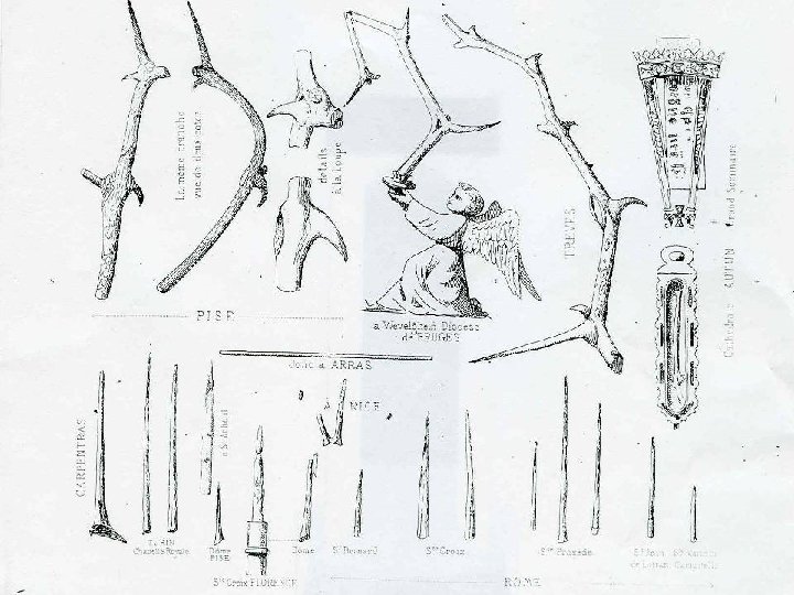 An attempt to display spiny plants associated with the ”Crown of Thorns” • Images of plants seen on the Shroud of Turin are the most authentic source of information on the identity of these plants. • A survey of relic spines saved in monasteries and churches carried out in the 1800’s (Fleury 1870) provides additional information on some of the thorns. • Contemporary merchants supplying souvenirs to tourists tend to use the locally available trees, without any historical background.
