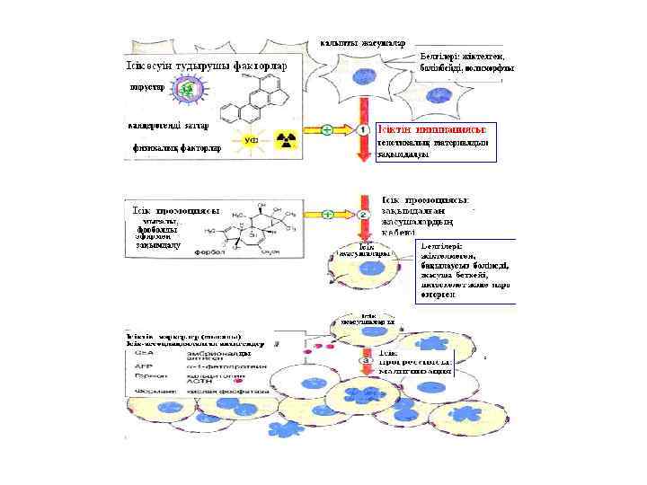 Канцерогенез сатылары: • Ісік инициациясы • Ісік промоциясы • Ісік прогрессиясы