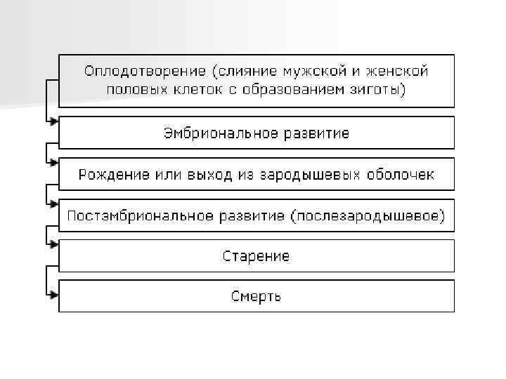 Онтогенез (от греч. ón, род. падеж óntos – сущее и от греч. genesis – происхождение, возникновение) – индивидуальное развитие организма от момента его зачатия до конца жизни n Рост – характеристика количественная. Она подразумевает увеличение размеров тела за счет увеличения количества клеток и составляющих их частей. n Развитие – характеристика качественная, подразумевающая изменения, новообразования. n В онтогенезе наблюдается усложнение строения и функций всех тканей и органов. n