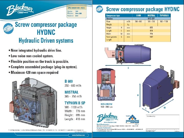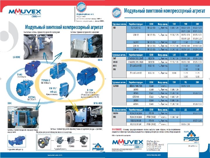 OOO «ГИДРОТРАК» Компрессоры MOUVEX-BLACKMER Совместное украинско-польское предприятие ООО “Гидротрак”(www. hydrotruck. com. ua , www. hydrotruck. pl) ведет деятельность с 1999 года. Предприятие занимается поставкой, монтажом, гарантийным, послегарантийным обслуживанием техники и оборудования для выкачки сыпучих, запасных частей к цементовозам, продажей цементовозов. Основная область деятельности нашей фирмы – это реализация специализированного оборудования для погрузки и разгрузки, применяемого в автомобильном транспорте. ООО «Гидротрак» – официальный дистрибьютор таких фирм, как: HYVA – силовая гидравлика и гидроцилиндры для опрокидывания и разгрузки, HYVALIFT – портальные и крюковые погрузчики, HYVACRANE – краны-манипуляторы, MOUVEX- BLACKMER– компрессоры, RINGFEDER –сцепные автомобильные устройства, VBG – сцепные автомобильные устройства и комплексные сцепные системы.