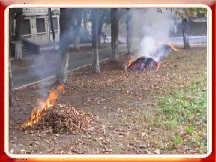 В більшості випадків опале листя дуже швидко стає сумішшю листя і різноманітного побутового сміття, яке протягом зими активно накопичується, змішуючись з листям і створює сприятливе місце існування для щурів і небезпечних інфекцій, що ними розносяться.