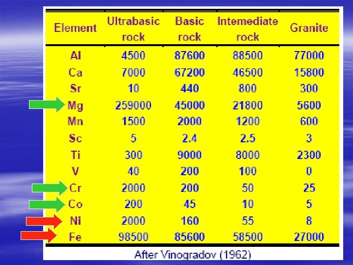 Geochemical evolution of magmatism between 3. 5 and 2. 7 Ga: At the early stage of their development, tholeiitic magmas were considerably enriched in chalcophile and siderophile elements Fe, Mg, Cr, Ni, Co, V, Cu, and Zn. At the next stage, calc-alkaline volcanics of greenstone belts and syntectonic TTG granitoids were enriched in lithophile elements Rb, Cs, Ba, Th, U, Pb, Nb, La, Sr, Be and others (Samsonov, Larionova, 2006). Lead isotope compositions of tungsten-bearing minerals occurrences worldwide indicate that tungsten (W) of crustal mineralization was mainly supplied by the mantle between 3. 0 and 2. 4 Ga (Chiaradia, 2003).