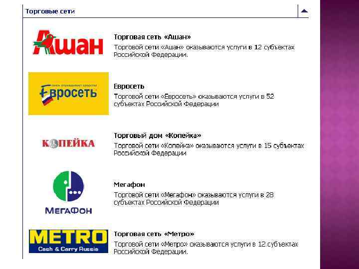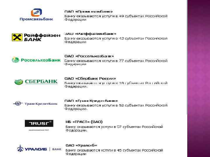 Центральный банк Российской Федерации Объединение исполняет поставленные задачи на всей территории Российской Федерации. Федеральное казначейство (Казначейство России) Объединение «РОСИНКАС» сотрудничает по всей территории Российской Федерации. Федеральная таможенная служба РФ Объединение «РОСИНКАС» сотрудничает по всей территории Российской Федерации. ФГУП «Почта России» оказываются услуги в 46 субъектах Российской Федерации РАО «РЖД» оказываются услуги в 58 субъектах Российской Федерации.