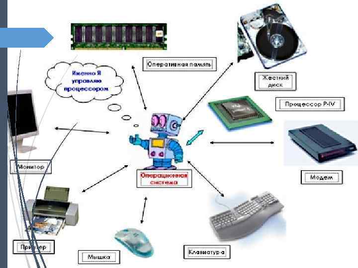 Основные компоненты операционной системы Ядро оболочка, с помощью которой пользователь «общается» с компьютером. Интер фейс переводит команды с языка программ на язык машинных кодов Драйвер ы устройст в программы, управляющие устройствами
