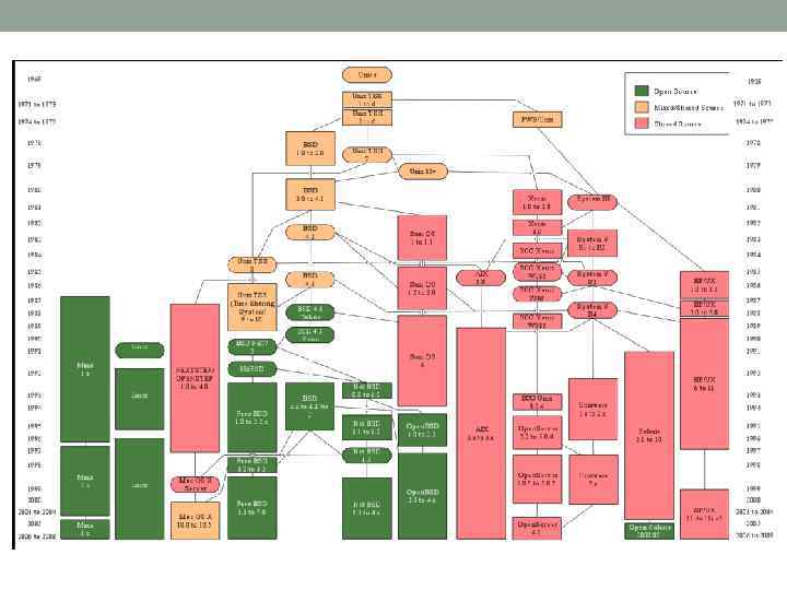 Третье поколение ОС середина 60 -х – середина 70 -х Многорежимные OS Появление UNIX. Bell Labs, 1969 Они обеспечивают обработку информации во всех известных режимах: • пакетную обработку; • разделение времени; • режим реального времени; • мультипроцессорный режим. Универсальность этих систем обусловила их громоздкость и дороговизну. Для работы с ними пользователю приходилось изучать сложные языки управления заданиями, чтобы уметь описывать задания и требуемые ресурсы.