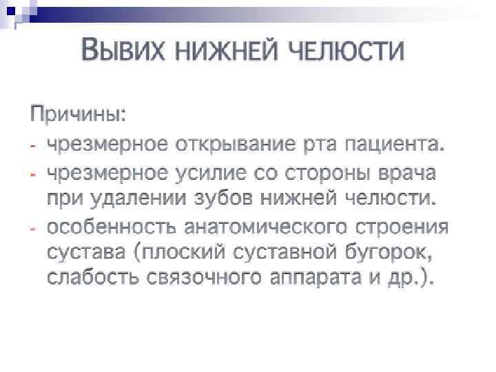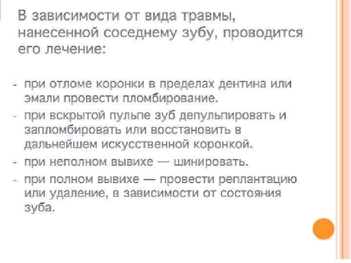 5. 6. 7. 8. 9. Неправильно расположенные зубы, травмирующие слизистую оболочку рта, языка и не подлежащие ортодонтическому лечению. Такие зубы удаляют по эстетическим показаниям. Не прорезавшиеся в срок или частично прорезавшиеся зубы, вызывающие воспалительный процесс в окружающих тканях, который ликвидировать другими путем невозможно. Расположение в щели перелома зубы, мешающие репозиции отломков и не подлежащие консервативному лечению. Выдвинувшие в результате потери антагониста зубы, конвергирующие и дивергируюшие зубы, мешающие изготовлению функционального зубного протеза. Для устранения аномалии прикуса при ортодонтическом лечении удаляют даже устойчивые, не пораженные кариесом зубы. сверхкомплектные зубы, создающие трудности для протезирования, травмирующие мягкие ткани, вызывающие болевые ощущения, нарушающие функцию жевания;