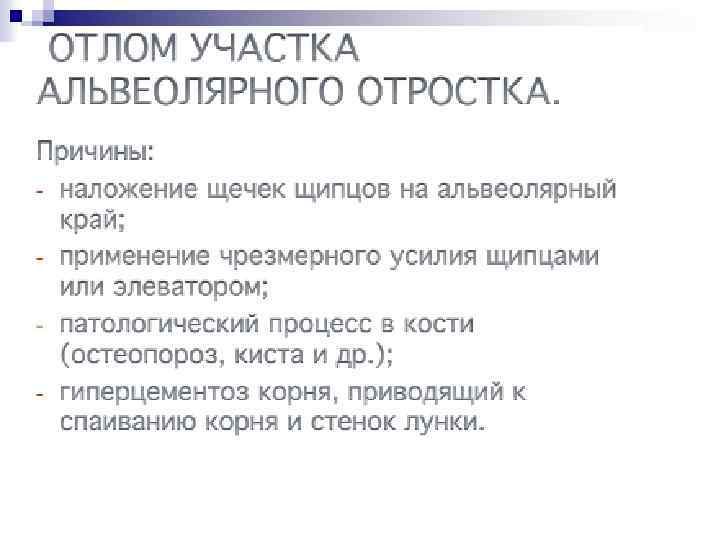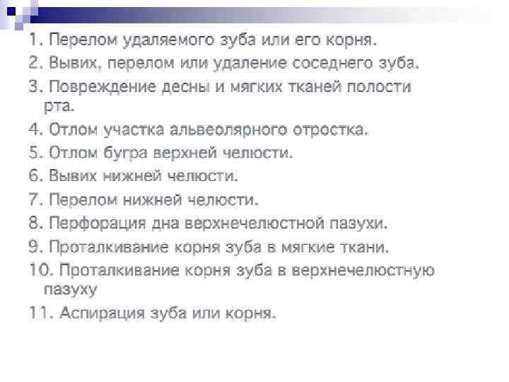 Относительными (временными) противопоказанием к операции удаления зуба являются следующие заболевания : 1. 2. 3. 4. Сердечно сосудистые (предынфарктное состояние и в течении 3 6 месяцев после перенесенного инфаркта миокарда, гипертоническая болезнь в период криза, ишемическая болезнь сердца с частными приступами стенокардии, пароксизм мерцательной аритмии, пароксизмальная тахикардия, острый септический эндокардит и др. ). Острые заболевания паренхиматозных органов печени, почек, поджелудочной железы (инфекционный гепатит, гломерулонефрит, панкреатит и др. ) Геморрагические диатезы (гемофилия, болезнь Верльгофа, С авитаминоз) заболевания, протекающие с геморрагическими симптомами (острый лейкоз, агранулоцитоз). Острые инфекционные заболевания (грипп, острые респираторные заболевания, рожистое воспаление, пневмония).
