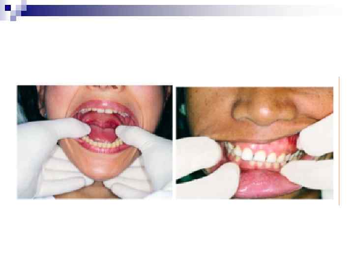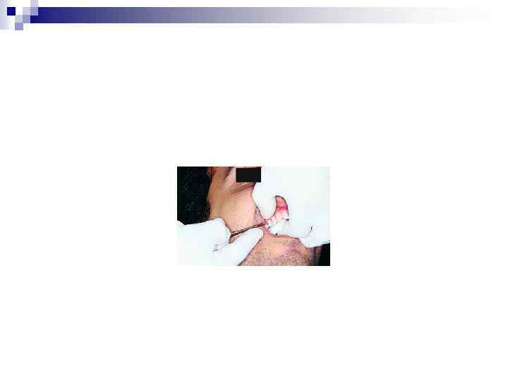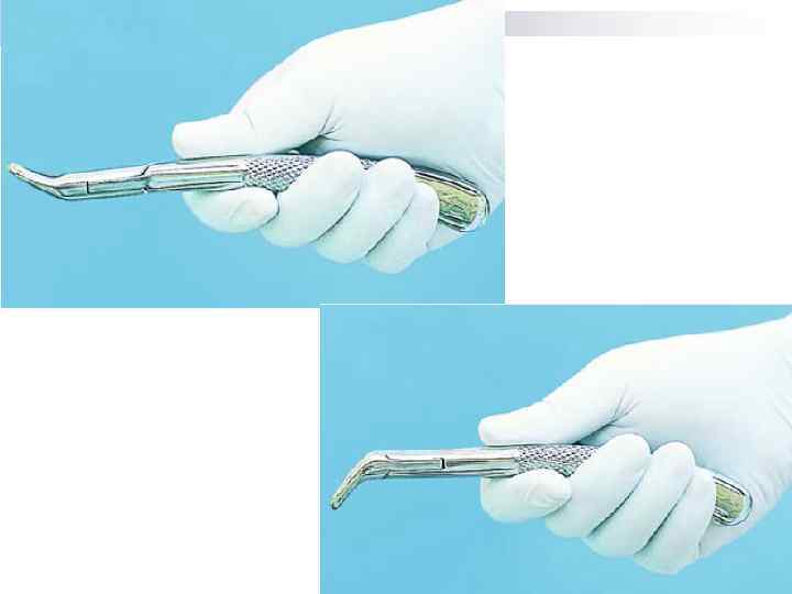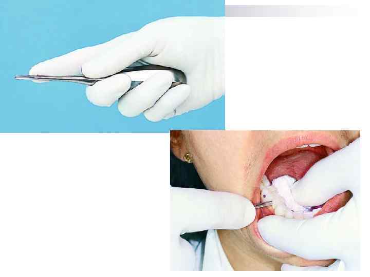 3. Положение пальцев левой кисти врача При удалении зубов на верхней челюсти I и II пальцами фиксируют альвеолярный отросток на уровне удаляемого зуба. n При удалении зуба на нижней челюсти слева II палец кисти располагается в преддверии рта, отодвигая левую щеку, III палец – между альвеолярным отростком и языком, а I палец – под краем нижней челюсти, фиксируя ее. n