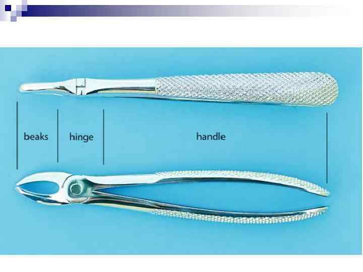 1. Правильный выбор инструмента Щипцы n Устройство и форма щипцов неодинаковы. Конструкция их зависит от анатомического строения зуба и места его в зубном ряду. Различают следующие виды щипцов: 1. Щипцы для удаления зубов и корней верхней (рис. 27, 28) и нижней челюстей (рис. 29). у щипцов для удаления зубов верхней челюсти продольная ось щечек и ось ручек совпадают, или параллельны, или образуют тупой угол, прибли жающийся к двум прямым углам (рис. 30, а—г). У щипцов для удаления зубов нижней челюсти щечки и ручки расположены под прямым углом или под углом, приближающимся к прямому (рис. 30, д).