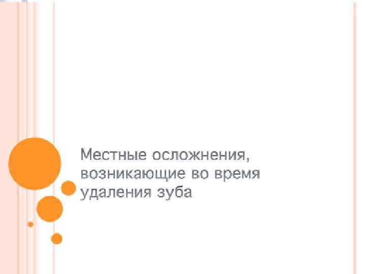 Местными противопоказаниями к удалению зуба являются: n n n острая лучевая болезнь I — III стадии; заболевания слизистой оболочки полости рта (язвенно некротические гингивиты, стоматиты); поражения слизистой оболочки полости рта при таких заболеваниях, как скарлатина, туберкулез, сифилис, лепра, вирусные процессы (герпесы, ВИЧ инфекция, грибковые инфекции); аллергические и токсикоаллергические заболевания (стоматит, гингивит, хейлит от химических веществ), синдром Стивенса— Джонсона, синдром Лайелла, системные васкулиты, включая синдром Вегенера; предраковые заболевания (облигатные и факультативные) и опухоли (доброкачественные и злокачественные). Особо следует быть осторожным при расположении зуба в зоне злокачественной или сосудистой опухоли.