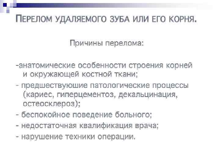 Наиболее частой операцией, производимой в стоматологической практике, является удаление зуба. n Оперативное вмешательство, направленное на удаление пораженного зуба, требует соблюдения всех общих принципов, которое неотъемлемы при проведении операции в других областях человеческого тела. n