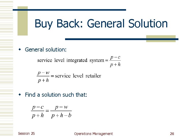 Buy Back: General Solution w General solution: w Find a solution such that: Session 25 Operations Management 28