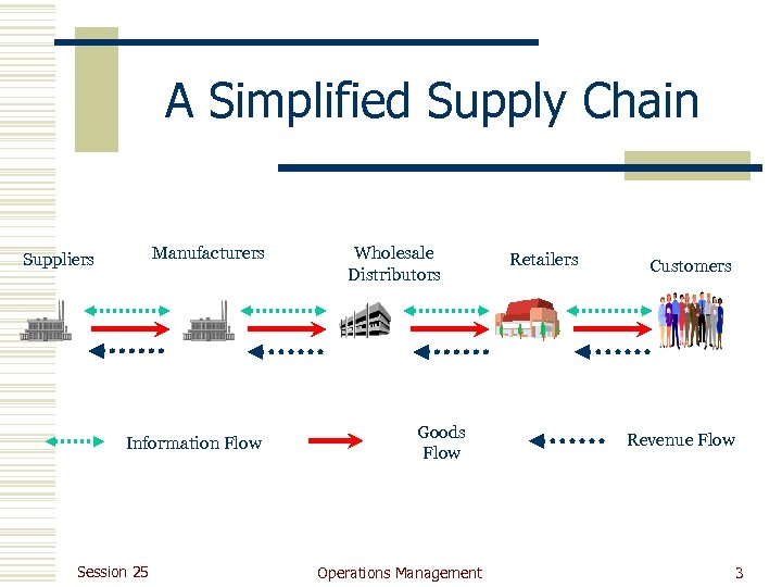 A Simplified Supply Chain Manufacturers Suppliers Information Flow Session 25 Wholesale Distributors Goods Flow Operations Management Retailers Customers Revenue Flow 3