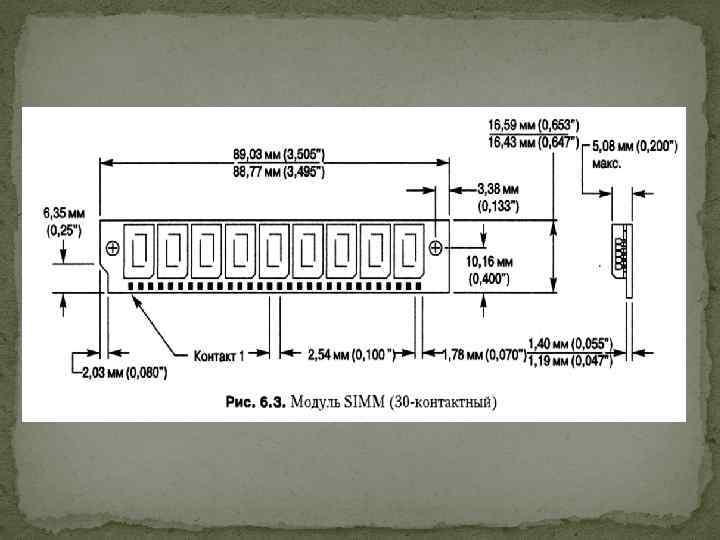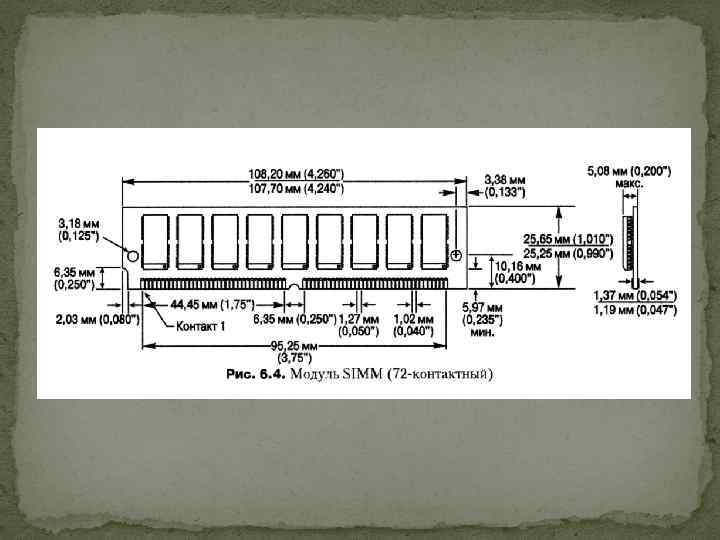 Модулі SIMM, DIMM i RIMM Мікросхеми повинні бути одночасно і припаяними, і легко замінними. Цей принцип знайшов своє застосування в модулях SIMM. Як альтернативу установці окремих мікросхем пам'яті в абсолютній більшості настільних систем використовують модулі SIMM, DIMM або RIMM. Це невеликі плати з мікросхемами пам'яті, які вставляються в спеціальні роз'єми материнської плати.
