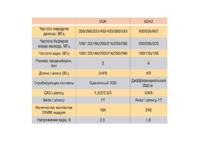 Микросхем DDR 2, электрически несовместимы с DDR! Модули памяти типа DDR 2 производятся в виде 240 -контактных модулей DIMM, электрически несовместимых со слотами для модулей памяти типа DDR (по количеству выводов, расстоянию между выводами и цоколевке модулей).