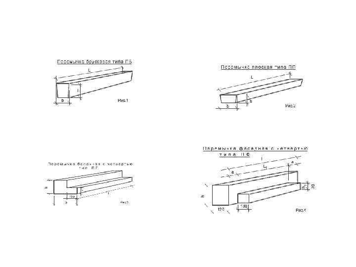 Железобетонные перемычки Предназначены для перекрывания оконных и дверных проемов ПБ –перемычки брусковые; ( для стен из кирпича толщиной 65 мм ПП – перемычки плитные; ПГ – перемычки балочные с четвертью для примыкания плит перекрытий; • Перемычки брусковые ПБ могут быть несущими для проемов в несущих стенах (3 ПБ сечением 120 х220 мм и 5 ПБ сечением 250 х220 мм) и ненесущими ( для проемов в перегородках) сечением 120 х140 мм (2 П • величина опирания (глубина заделки) перемычки в ненесущих стенах – 100 - 150 мм; в несущих стенах – 170 – 300 мм; • Длина перемычек – от 1 м до 3 м; • •