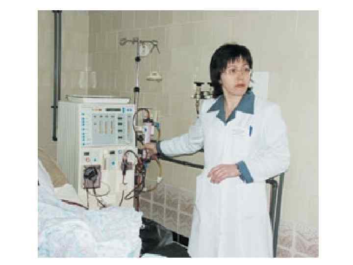 Осложнения гемодиализа • Быстрое снижение осмоляльности плазмы вызывает развитие гипоосмоляльного синдрома – оглушенность, спутанность сознания, эпиприпадки. • Быстрое выведение калия ведет к развитию аритмий. • Диализная гипотония развивается при снижении ОЦК и элиминации катехоламинов. • Вирусоносительство и гепатиты C и B. • Инфицированность цитомегаловирусом. • Выработка цитокинов и ФНО в следствие контакта с мембраной приводит к развитию амилоидоза.